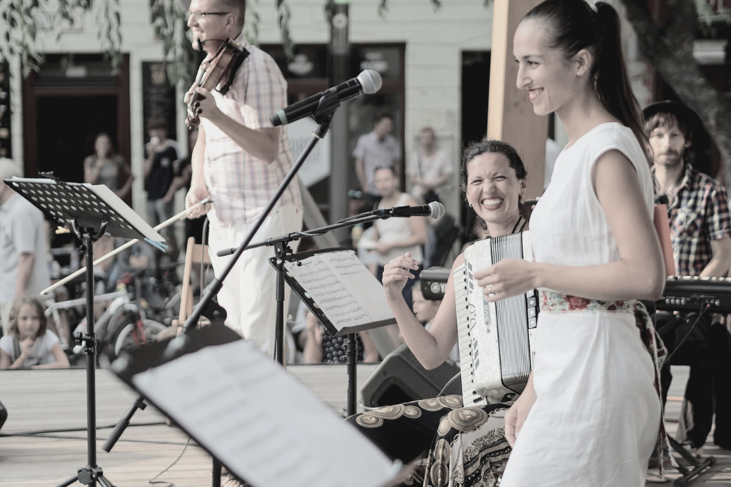 Ponúkame pestrú škálu hudobných programov, od živých festivalových koncertov cez tanečné večery s autentickým klezmerom a balkánskou energiou, až po tematické eventy  a programy.